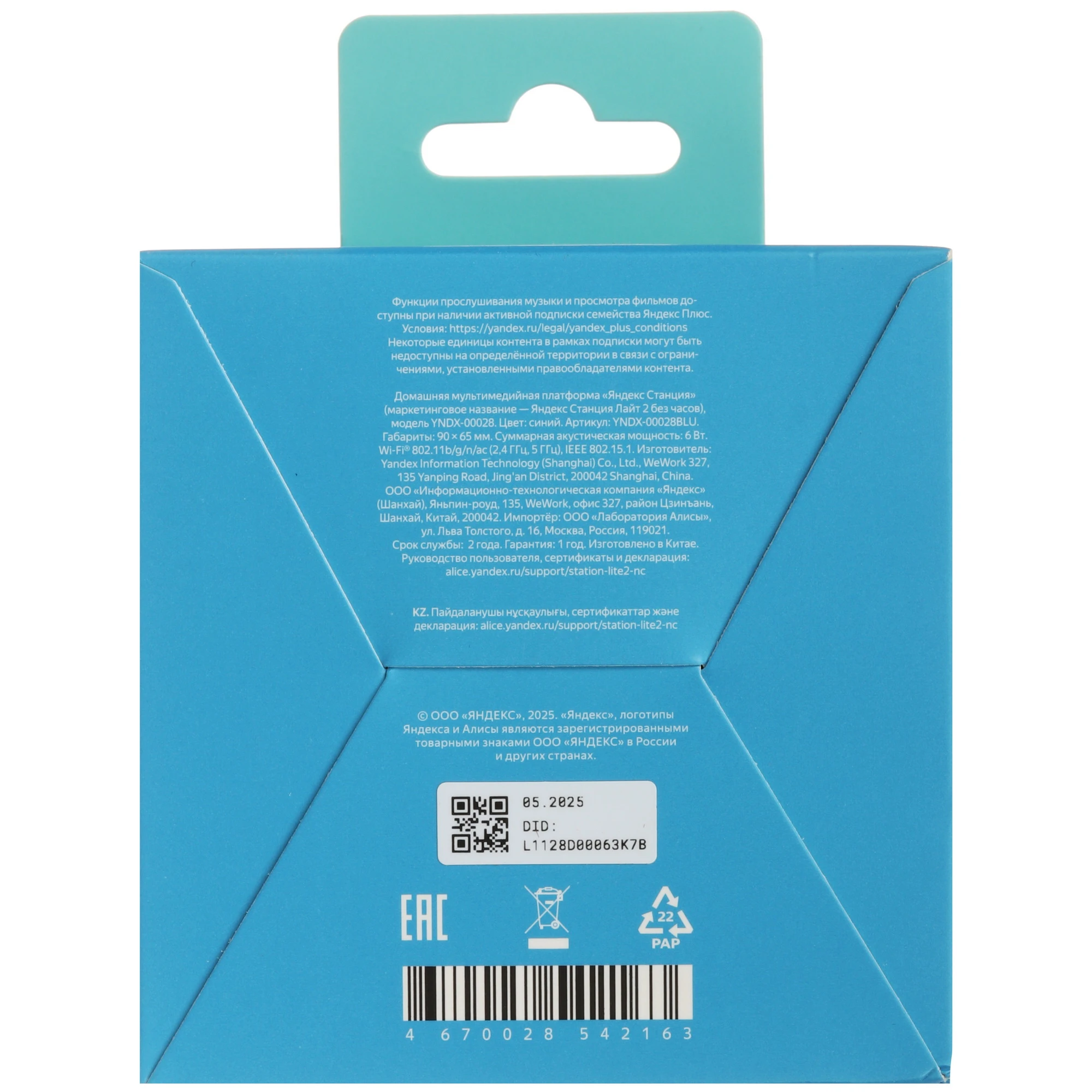 Акустическая система Яндекс.Станция Лайт 2 с Алисой (Синий, без часов)